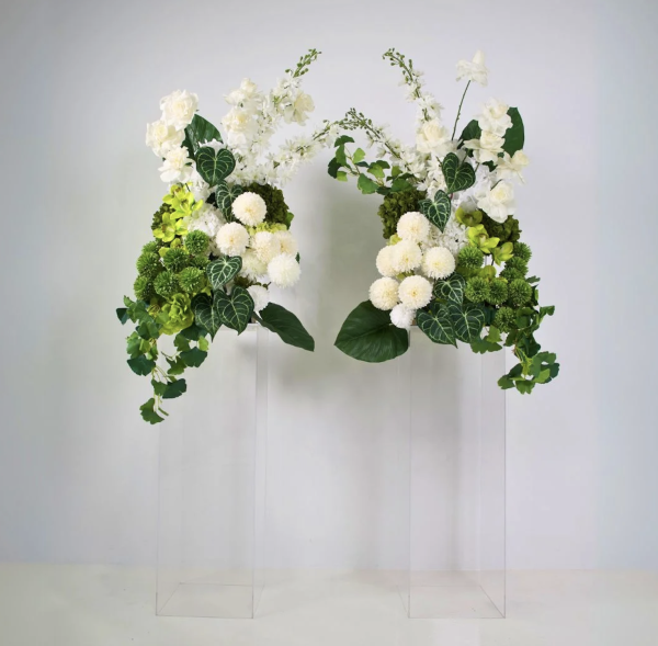 Bring a touch of natural elegance to your event with our Oasis Plinth Floral Package! Featuring sleek clear acrylic square plinths paired with stunning flower arrangements – this package creates a fresh, serene atmosphere that effortlessly enhances any celebration or special occasion!