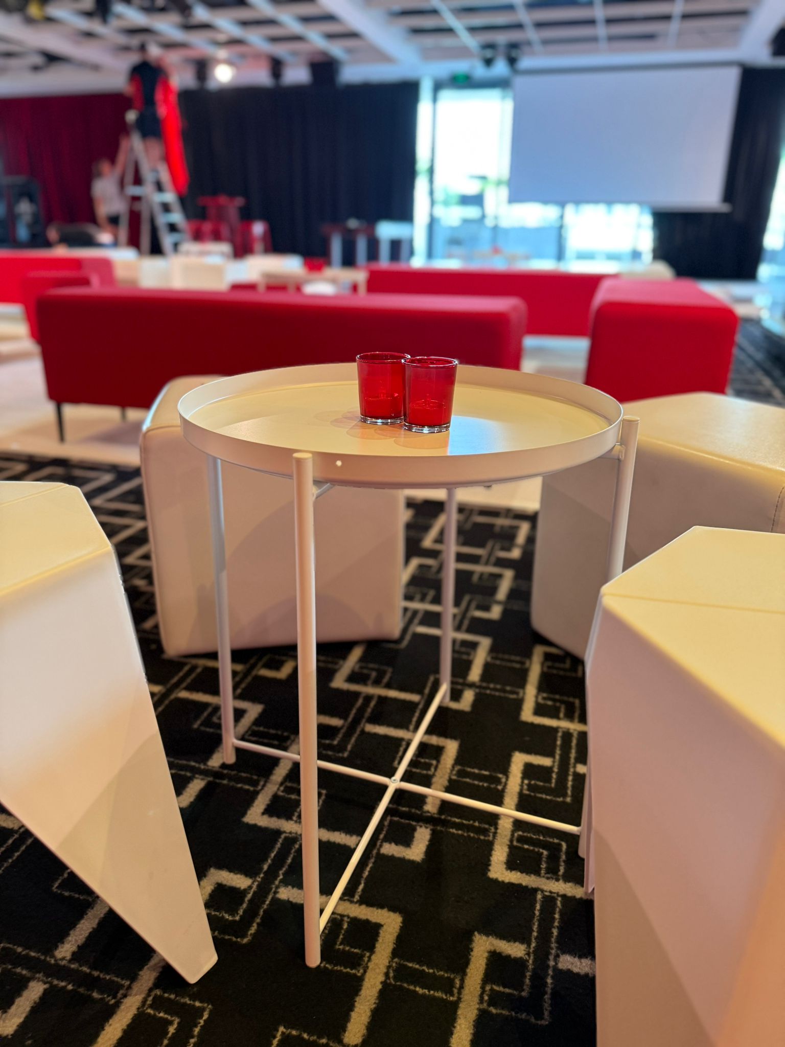 Elevate your lounge areas with the sleek, contemporary style of the White Metal Tray Side Table from Luxe Hire. This side table is the essence of minimal design, offering a crisp, bright aesthetic that complements high-end wedding lounges, corporate VIP areas, and modern event designs across Sydney. The clean all-white finish maintains a pristine look, while its functional design is paramount: the top features a subtle raised tray edge to expertly secure drinks and delicate decor, preventing spills and maintaining your event’s flawless presentation. Choose this durable and refined piece for a truly polished finish.